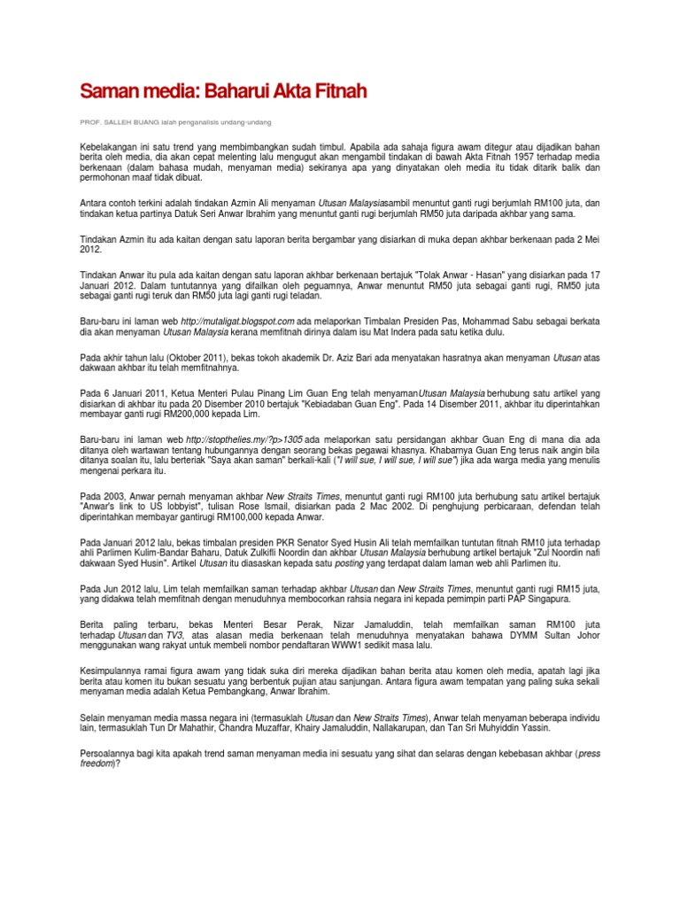 Akta Fitnah 1957 Pdf - & defamation act (act ):. Selain daripada akta fitnah 1957, akta komunikasi dan multimedia 199827. Aktiviti minggu 3 group journal. Books about akta fitnah 1957 (akta 286). An act to amend and consolidate the law relating to copyright. Akta konvensyen mengenai penyelesaian pertikaian pelaburan 1966.